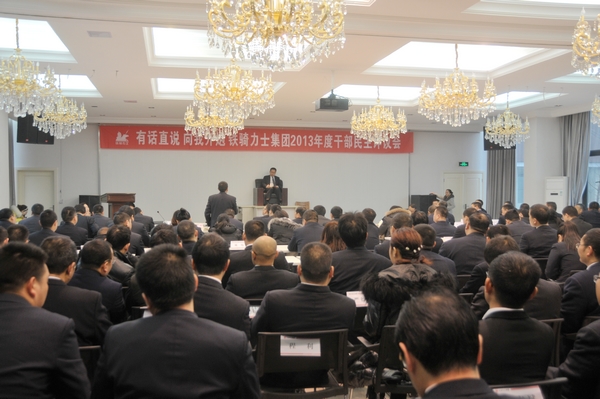 1月15日,“有话直说 向我开炮”铁骑力士集团2013年度干部民主评议会在成都双流总部召开。董事长雷文勇、总裁冯光德、执行总裁李全、副总裁邓先锋分别接受了评议。